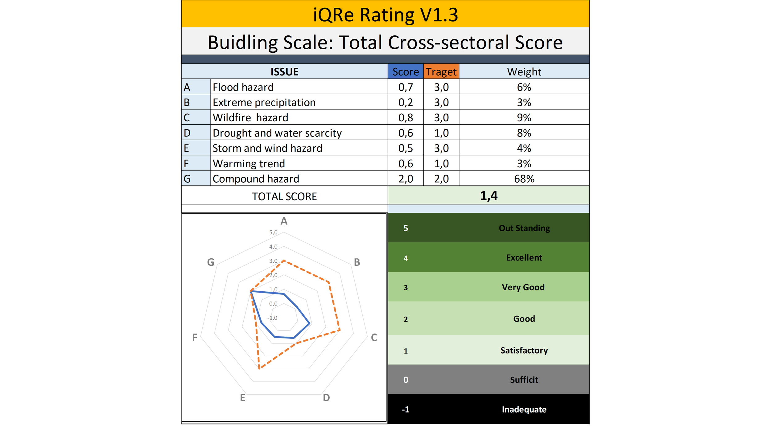 The iQRe rating is first numerical urban resiliency rating system that can cover all climate related risks, hazards , future climate projection and RCP scenarios and can be applied at single or multiple urban scales.